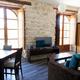 每间Ibiut Apartamentos Turísticos酒店的宽敞的空调公寓有带有一张沙发床和一台电视机的休息区。小厨房配有微波炉、电炉和冰箱。